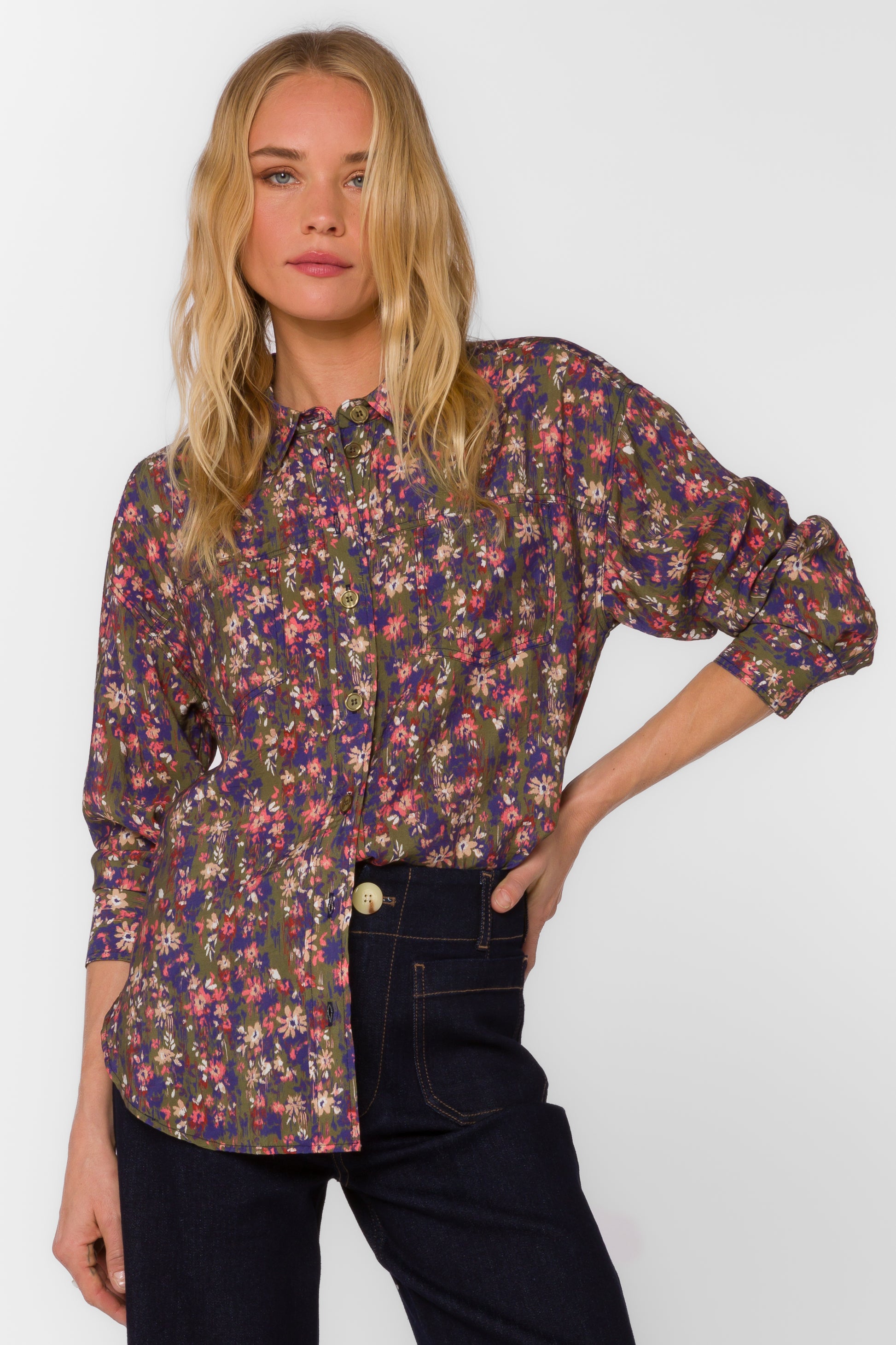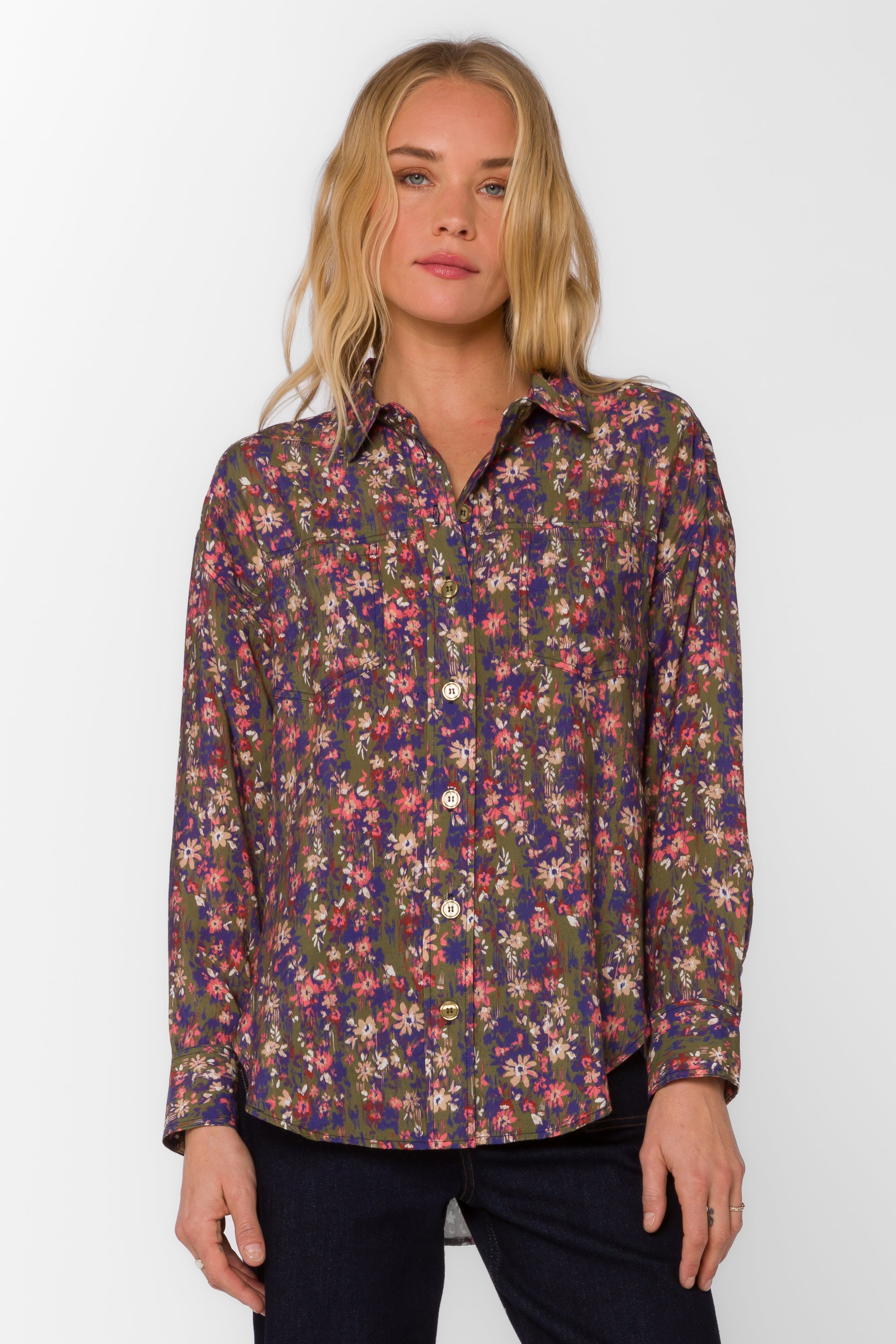 Elevate your wardrobe with the Braxton Top by Velvet Heart, featuring a charming ditsy greenery print. This long sleeve button-down combines classic style with a fresh, nature-inspired pattern, perfect for adding a touch of elegance to any outfit. Its lightweight fabric ensures comfort throughout the day, while the tailored fit enhances your silhouette effortlessly. Ideal for both casual and dressier occasions, this top brings a vibrant, botanical flair to your everyday look.