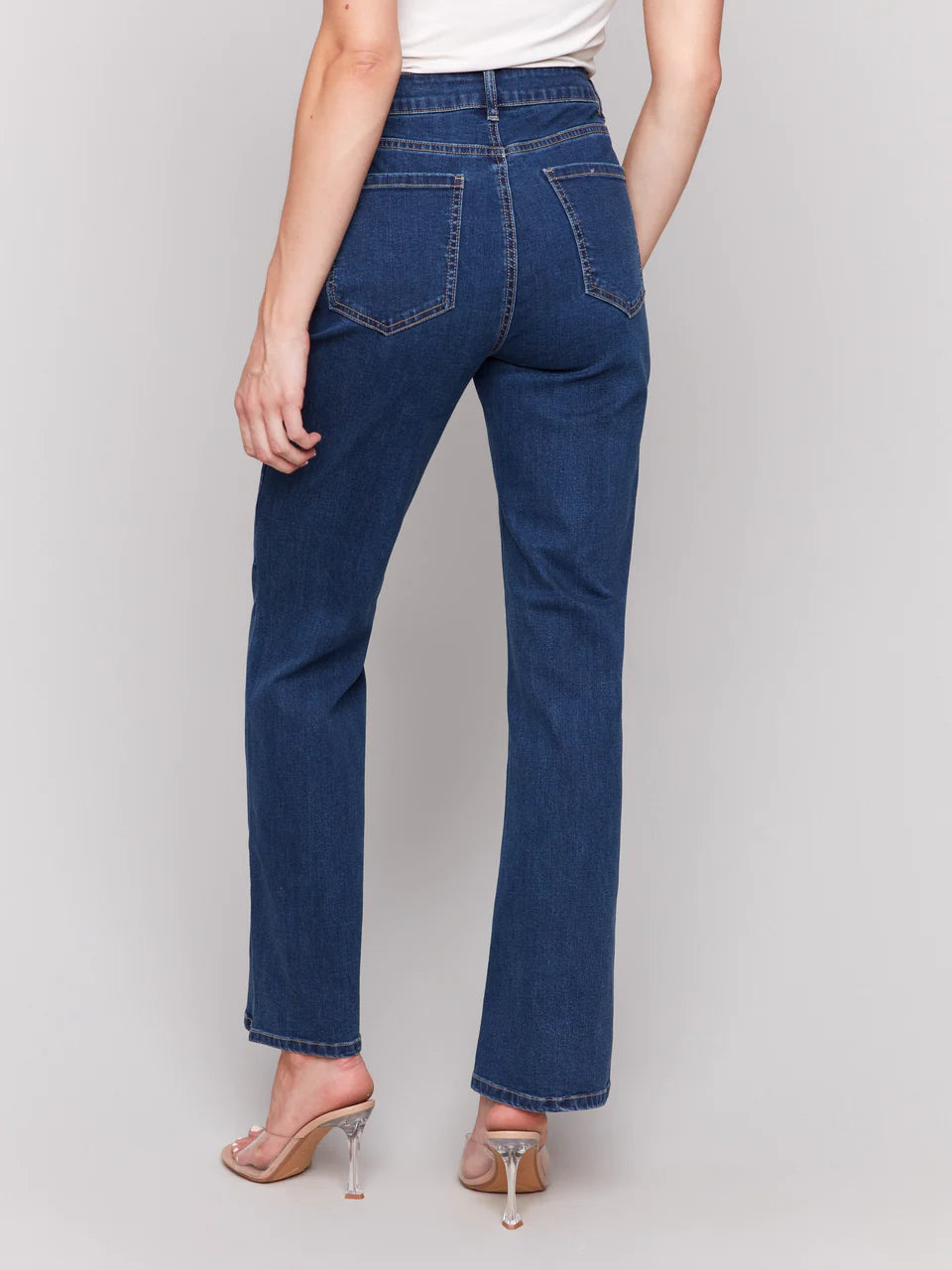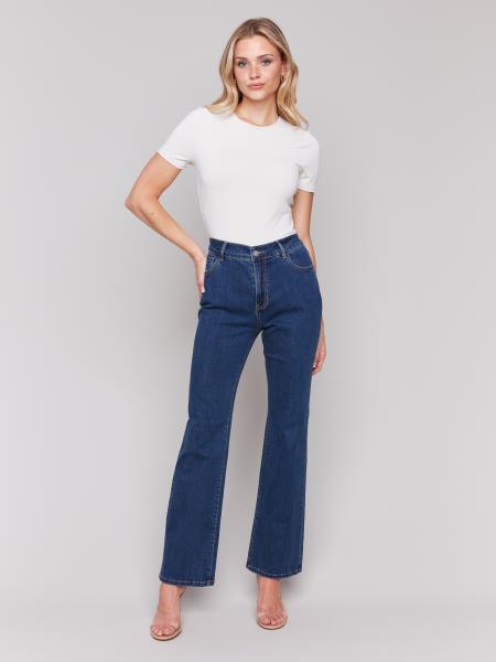 Revamp your closet with our chic, versatile jeansâ€â€the epitome of style meeting comfort. Crafted from a soft cotton blend with a flattering flare leg, these blue indigo jeans promise day-long comfort. The classic five-pocket design and subtle stretch enhance any ensemble, while the regular rise adds a touch of sophistication, elegantly defining your figure. Don't wait to embrace this exquisite blend of fashion and elegance!