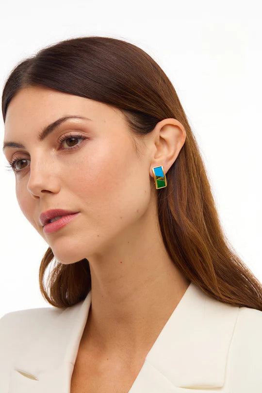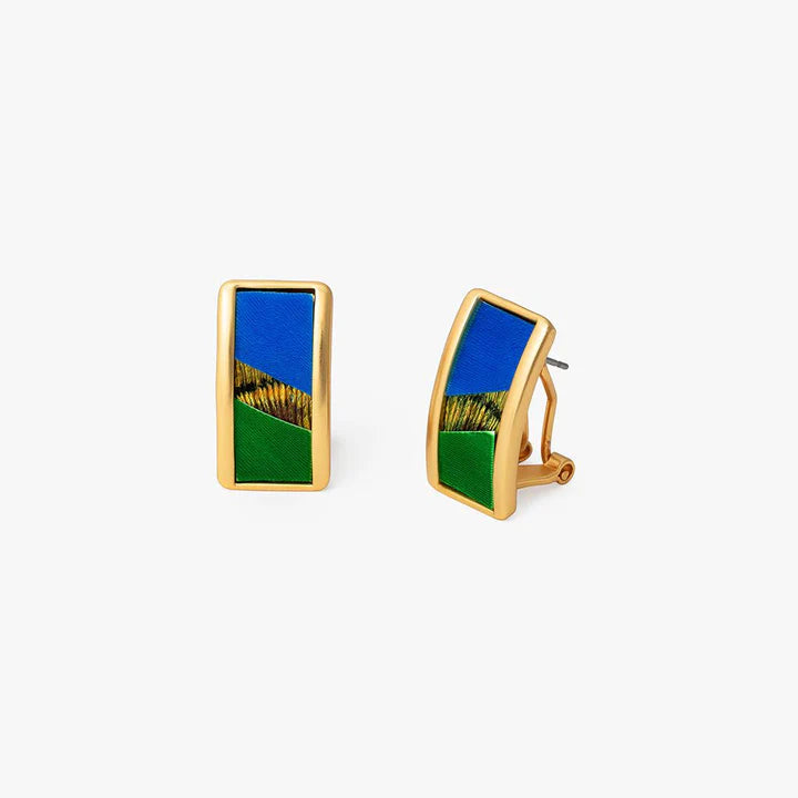 A fusion of bold elegance and natural beauty, the Cockburn Frame Stud Earrings are crafted from a stunning combination of goose and peacock feathers. The vibrant blues and greens of the peacock contrast beautifully with the soft, subtle tones of goose, creating a dynamic and refined statement. Framed delicately to highlight the intricate patterns and textures of the feathers, these studs add a touch of sophistication and individuality to any ensemble.