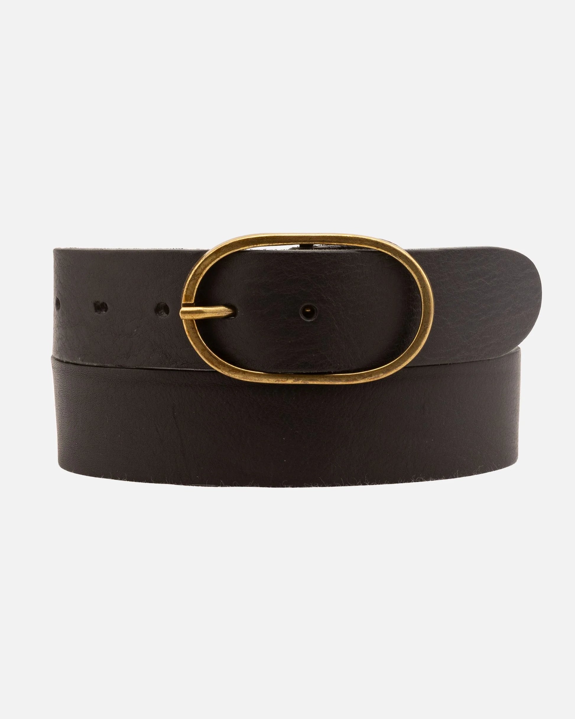 A timeless addition to your accessory collection, Fien classic leather belt is crafted from rich premium leather. Featuring an ellipse buckle in antique gold color, the leather belt for women is designed for waist contouring and built to withstand years of wear. This everyday belt is the perfect addition to tie your casual look together. Whether the leather belt is worn with jeans, dresses, blazers, coats or skirts, Fien classic leather belt will be the finishing touch your ensemble.