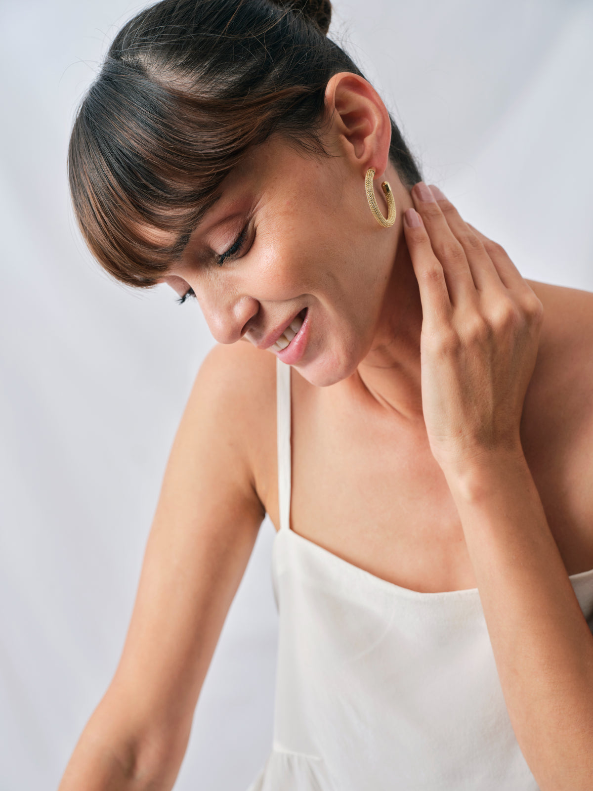 Made in Northern Italy, these large Lurex® mesh hoop earrings on a bangle are enhanced with sterling silver or gold-plated sterling silver finishes. Made in Italy.