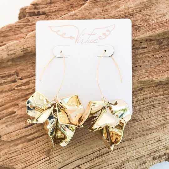 Hyacinth Tiered Earring on Marquis Hook by Virtue Jewelry in Metallic Gold