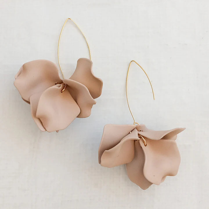 Add a playful touch to your jewelry collection with our Hyacinth Tiered Earring on Marquis Hook in Beige by Virtue Jewelry. These stunning earrings feature delicate tiers and a marquis hook, making them the perfect statement accessory for any occasion.