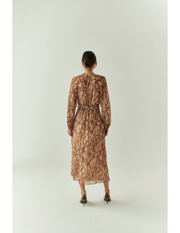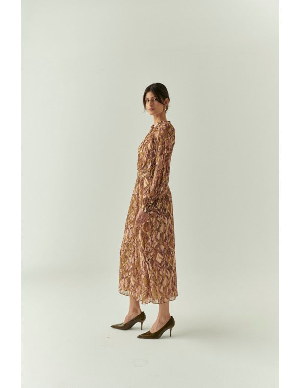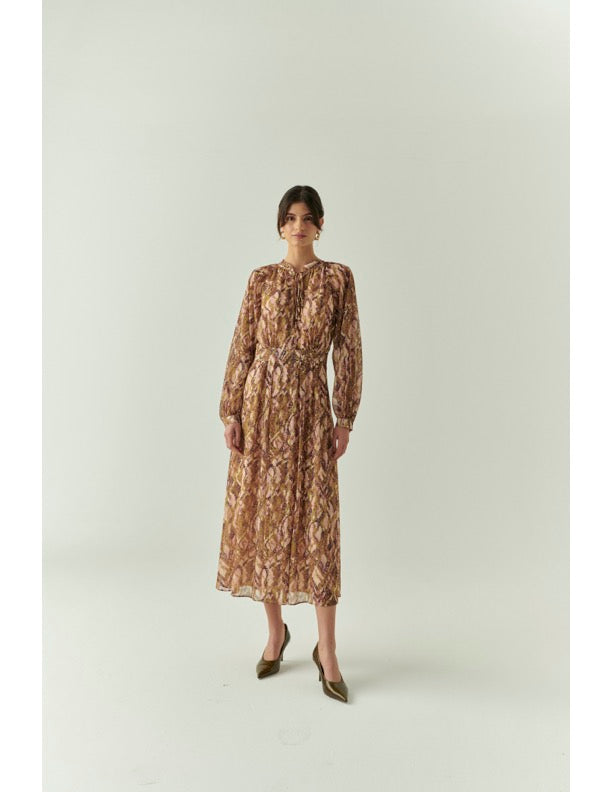 Elevate your wardrobe with the Kairi Dress by Exquise, a stunning long patterned dress designed to captivate. Featuring elegant long sleeves and a stylish tie detail at the top, this dress combines comfort with a flattering silhouette. Perfect for any occasion, it offers a graceful flow and timeless charm that ensures you stand out effortlessly. Embrace sophistication and make a lasting impression with the Kairi Dress.