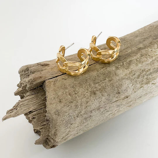 Small Chain Link Hoop Earring by Virtue Jewelry in Gold