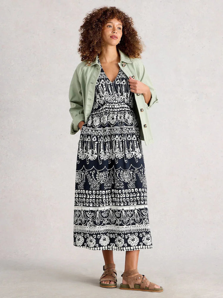 The dress that does errands and eveningwear without breaking a sweat. It’s 100% Ecovero viscose. Comfortable enough to be sensible. And detailed, printed and ruched enough to be a showstopper.