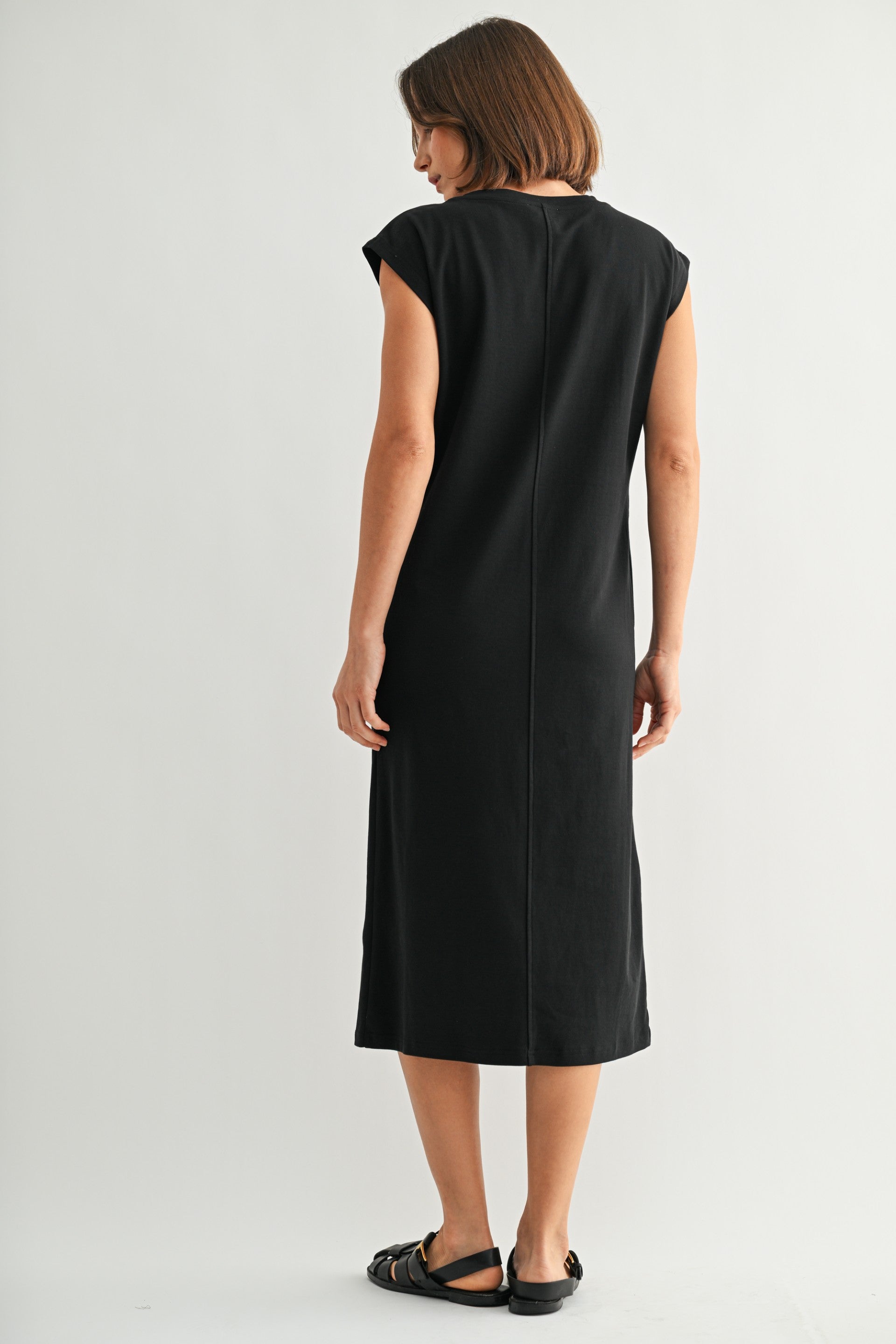Elevate your everyday wardrobe with this striking jersey knit dress featuring distinctive pleated shoulders that add dimension and visual interest. The soft, breathable fabric moves with you throughout your day, offering comfort without compromise. Perfect for transitioning from office to evening, this versatile black piece pairs effortlessly with sneakers, heels, or boots. The thoughtful pleated detail at the shoulders creates a flattering silhouette while the classic knit construction ensures durability and easy care.