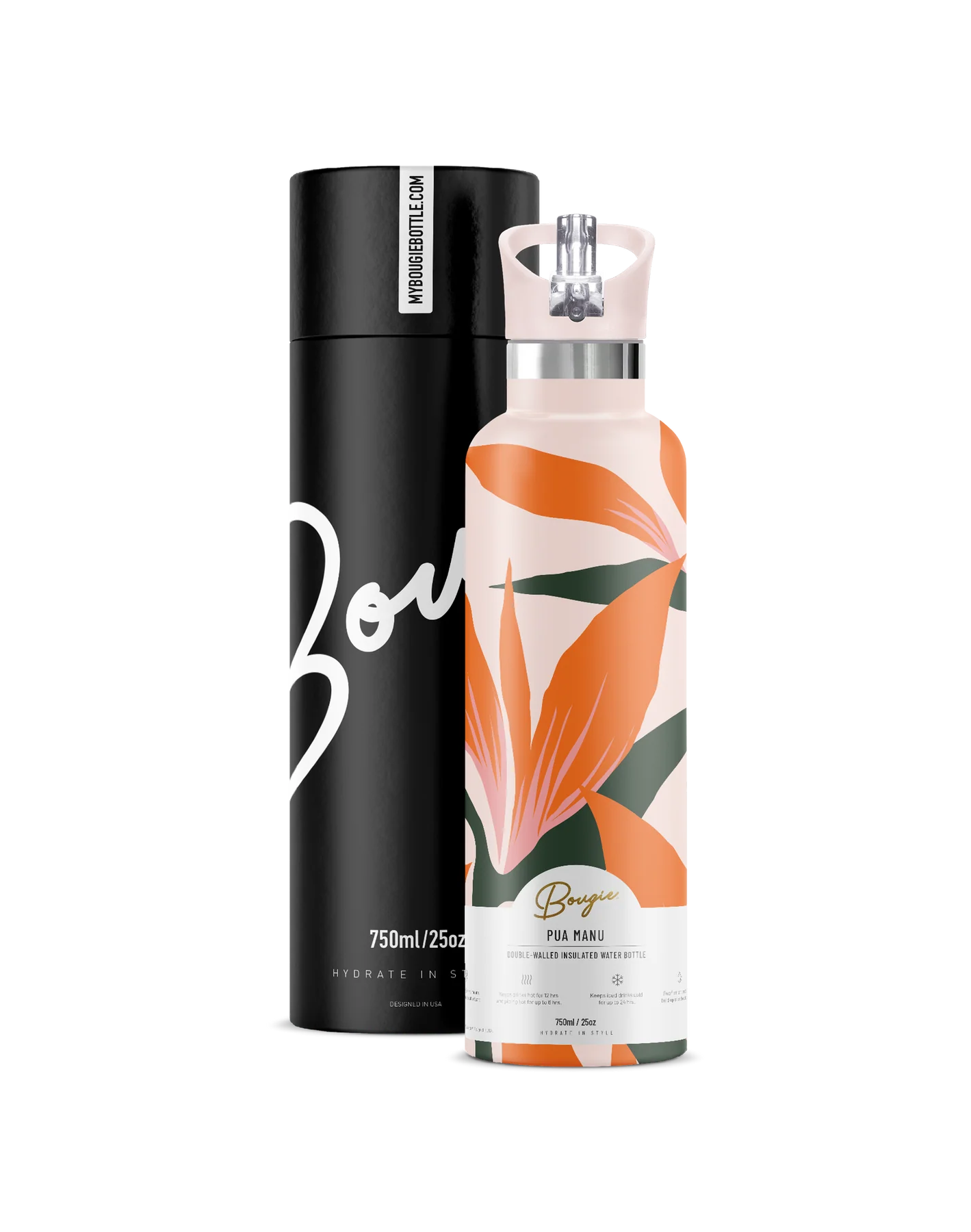 25oz. food-grade, 18/8 stainless steel bottle |