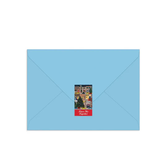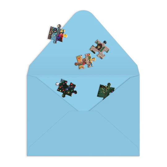 The Joy Laforme Winter Lights Greeting Card Puzzle from Galison captures the festive magic of the season at night in a vibrant city, lit up for Christmas. This card format is a more interactive and fun way to send a holiday greeting. The back of the image features room for a greeting. With room on the back to write a message, you then break up the puzzle and send for family or friends to assemble and then read.
