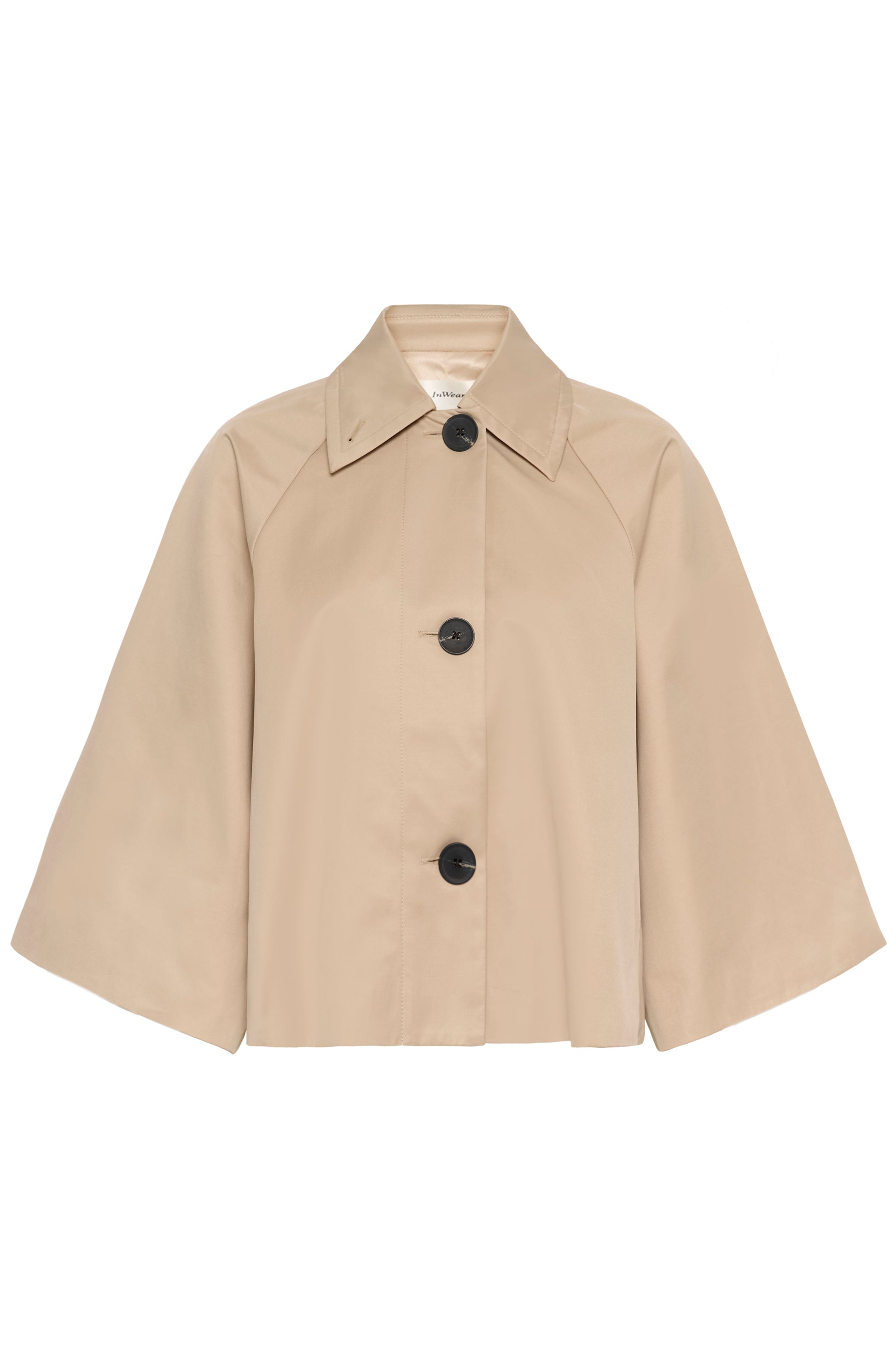 The Hinona Cape Jacket by InWear brings effortless elegance to your everyday wardrobe. Crafted in a warm sandstone tone, this versatile piece layers beautifully over dresses, sweaters, or casual basics. The cape silhouette offers a modern, sophisticated look while providing comfortable coverage for transitional seasons. Perfect for adding dimension to your style, this jacket transitions seamlessly from office to weekend wear.