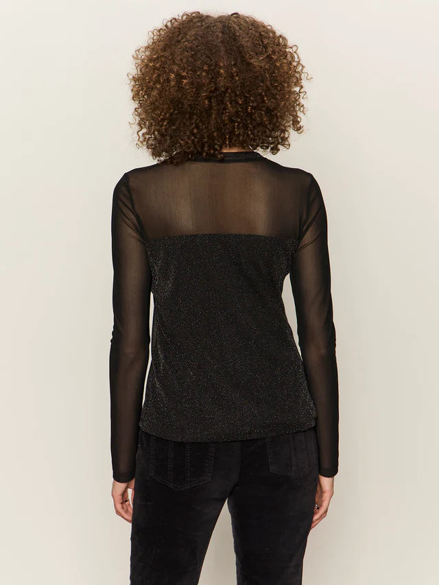 Update your casual style game wearing the simple yet stylish Sanctuary™ Sparkle Mesh Crew Tee. The pull-on style top features a crew neck with mesh upper body, mesh long sleeves, sparkly details, and a straight hem.