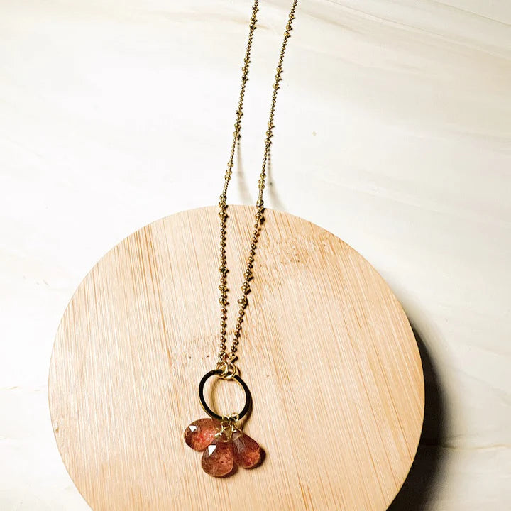 Elevate your vibes with our Strawberry Quartz Triple Necklace! Featuring 3 pear-shaped gems, this sweet necklace has gems said to attract love and happiness. Keep your spirit glowing and your fashion game on point with this necklace!