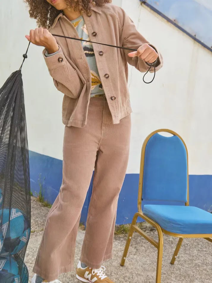 Crafted from an eco-friendly blend of 87% Organic Cotton and 13% Lenzing™ Lyocell (TENCEL™), the cords are soft, breathable, and sustainably made. Designed with a wide-leg silhouette and a cropped length, they strike the perfect balance between casual ease and everyday style. The Light Natural hue makes them a versatile neutral, ideal for pairing with colourful knits, relaxed tees, or structured shirts.