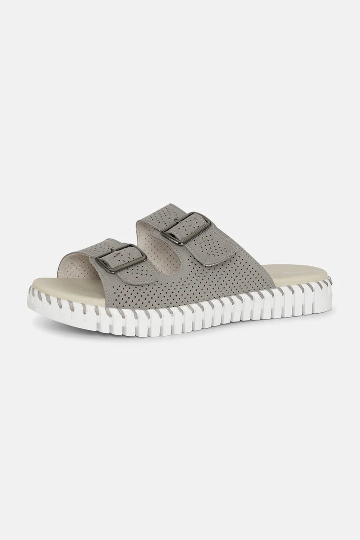 Slide into style with these Tulip Slide Sandals by Ilse Jacobsen in Grey. These comfy and chic sandals feature a unique tulip design, making them perfect for a day at the beach or a night out on the town. Upgrade your summer shoe game in these statement slides.