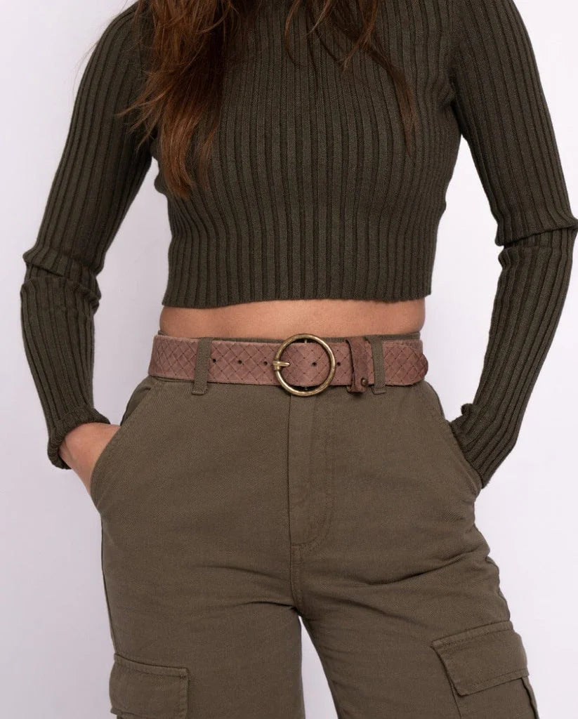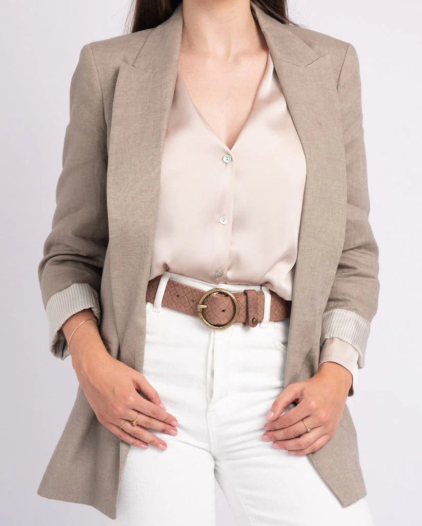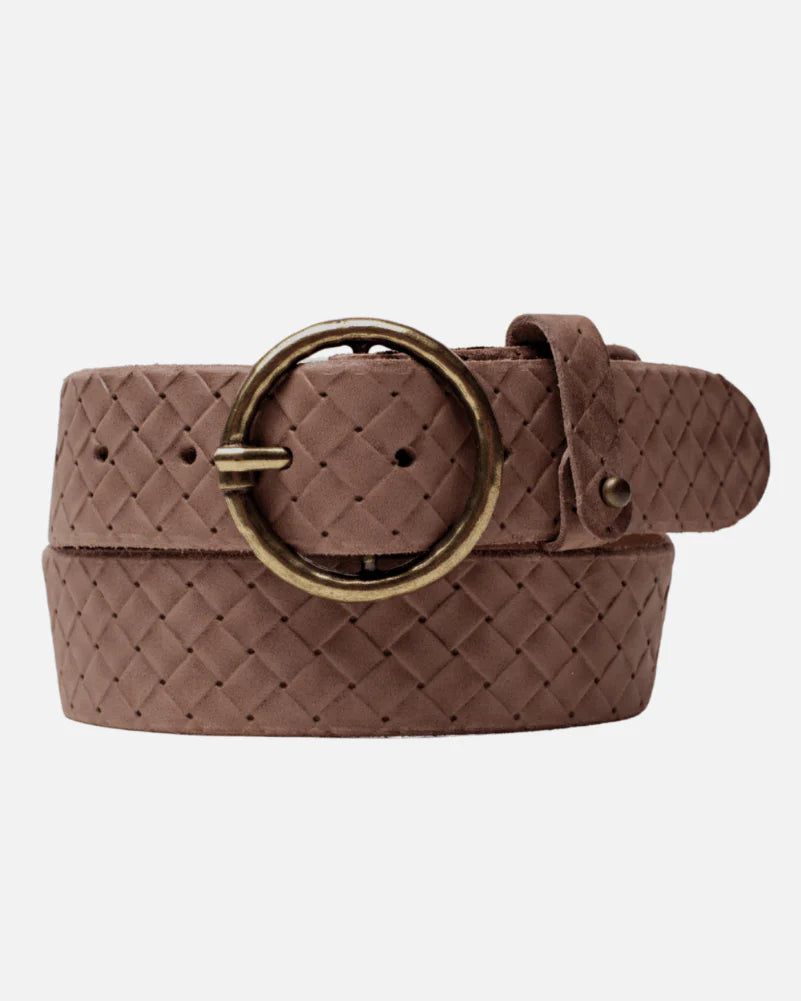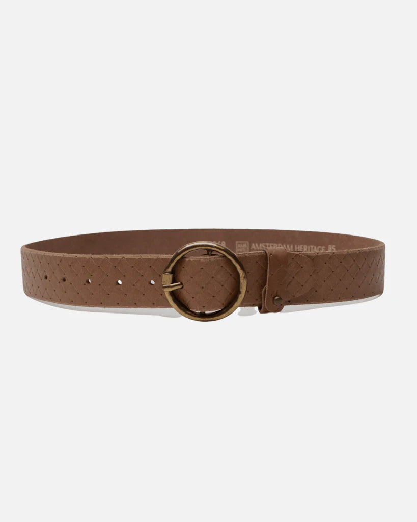 Nestled in the heart of Amsterdam Heritage is our design team, crafting the Nino belt to stand the test of time. Made from full-grain Italian leather, this modern accessory comes in our signature circle buckle in the color, antique and aged gold. Fused with the softness of its texture and natural tones, the leather strap comes with an embossed braided pattern that brings a subtle depth to its modern design. With a minimalist approach, the women's accessory shows itself off with its elegance and sophistication. Style it with any look - casual, preppy or classic.